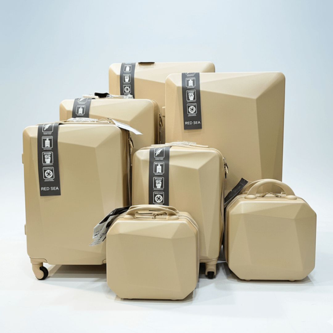 Elevate your travel experience with the 7-In-1 Red Sea TerraFacet Luggage Vault ensemble crafted for the modern jetsetter. Designed with bold geometric contours and a gold finish, this collection blends futuristic aesthetics with uncompromising functionality. Whether you’re heading for a weekend escape or a global expedition, each piece delivers a statement of style, strength, and sophistication.