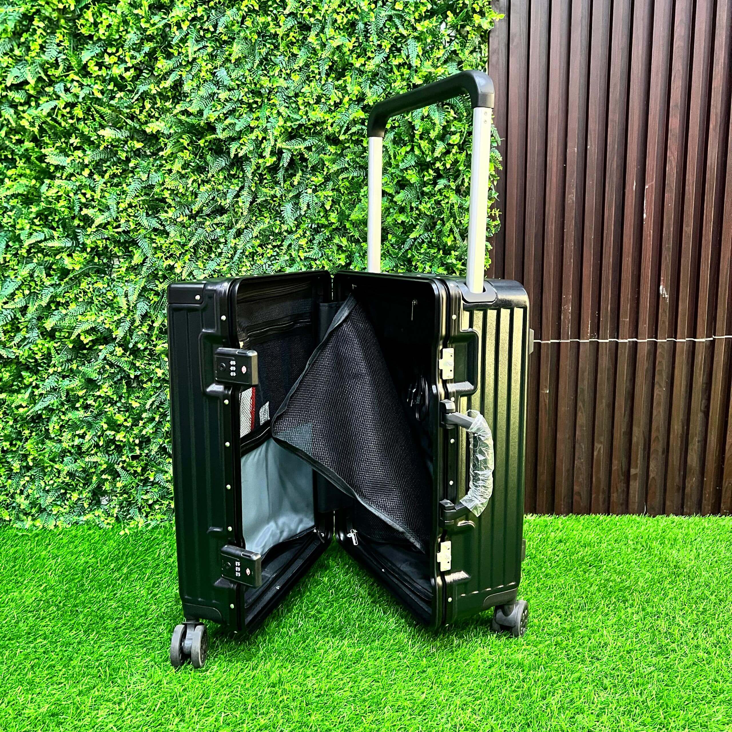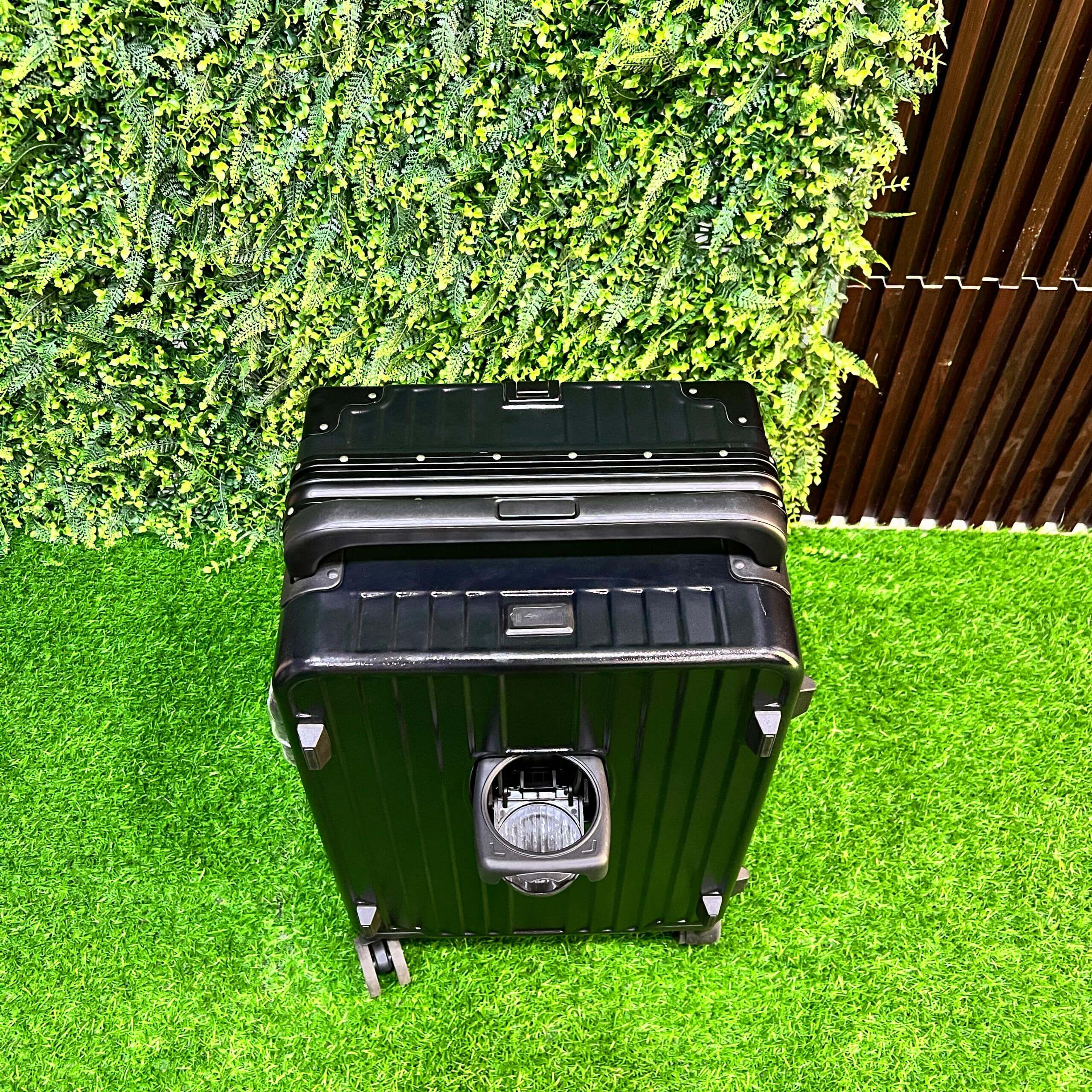 Introducing the PC Aluminum AeroRidge Suitcase — a sleek, minimalist travel companion engineered for modern travelers who demand elegance, durability, and smart functionality. This jet-black hard-shell suitcase combines a refined matte finish with advanced features, including a built-in charging port and an integrated bottle holder for added convenience on the go. Designed for seamless mobility and secure storage, it’s the perfect fusion of style and innovation.