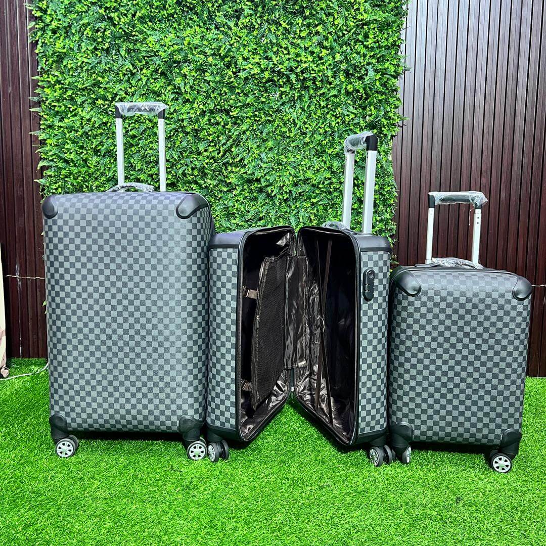 The Checkered 3-Piece Travel Luggage Set combines timeless design with modern innovation, offering three sizes—20″, 24″, and 28″—to suit every journey. Crafted from a high-grade polycarbonate blend, each piece is lightweight yet impact-resistant, featuring smooth 360° spinner wheels, an adjustable telescopic handle, and a TSA-approved lock for secure travel. Available in black, grey, and navy, this set delivers elegance, durability, and effortless mobility, making it the ultimate companion for both business and leisure.