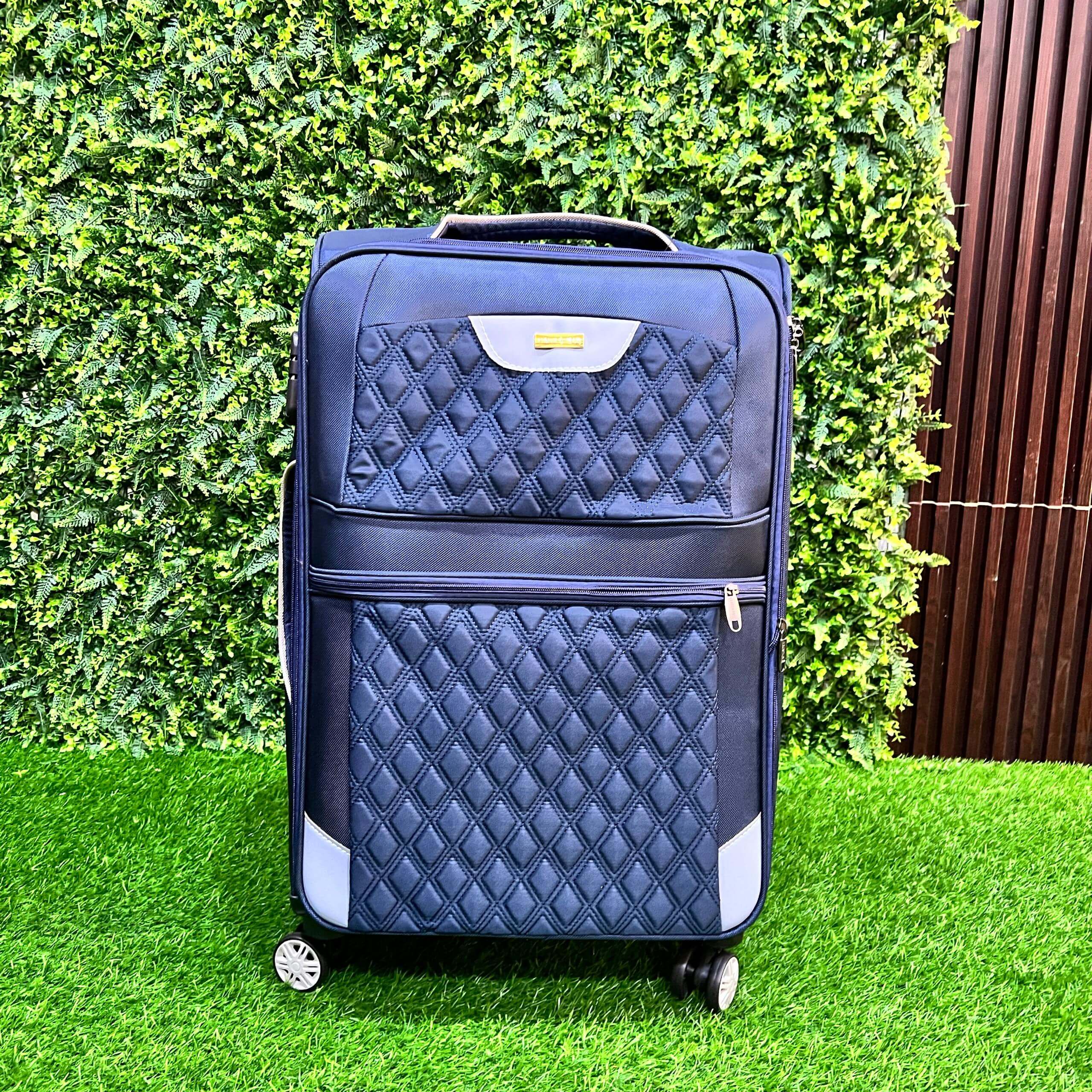 The Leader Polo 5-In-1 Luggage Set is a luxurious seven-piece travel set crafted in navy blue with a diamond-quilted finish and silver accents. With spinner wheels, telescopic handles, and coordinated carry-on and duffel bags, each piece offers seamless mobility and refined style. Designed for versatility and elegance, this collection is ideal for travelers who value both fashion and function.