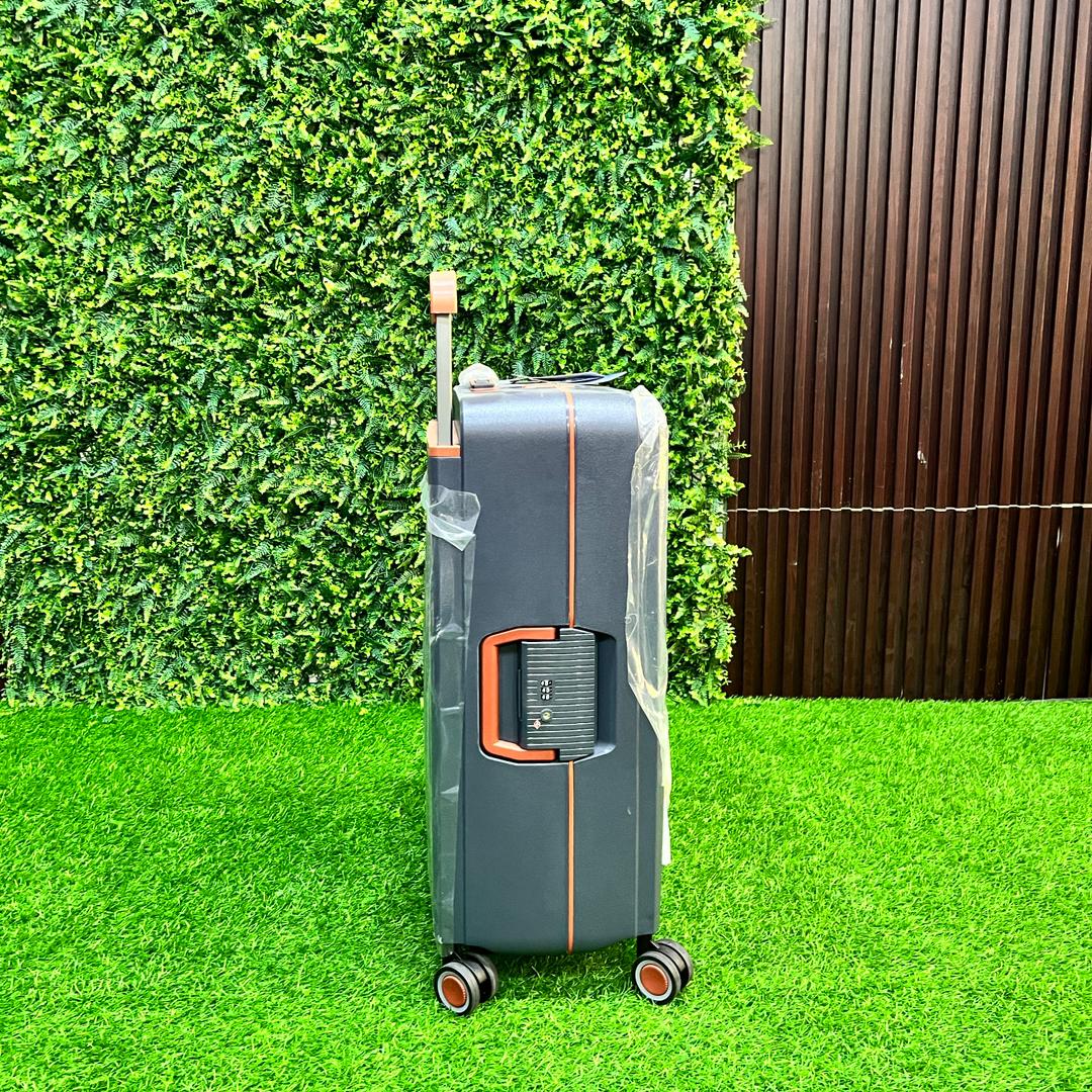 Travel in style with the Bubuie 3-In-1 Luggage Set – hard shell luggage set featuring ultra-durable 100% PP construction, smooth 360° spinner wheels, and a striking dark gray design with orange accents. Includes 99L (30″), 66L (26″), and 39L (22″) cases with spacious interiors and ergonomic handles for seamless travel.