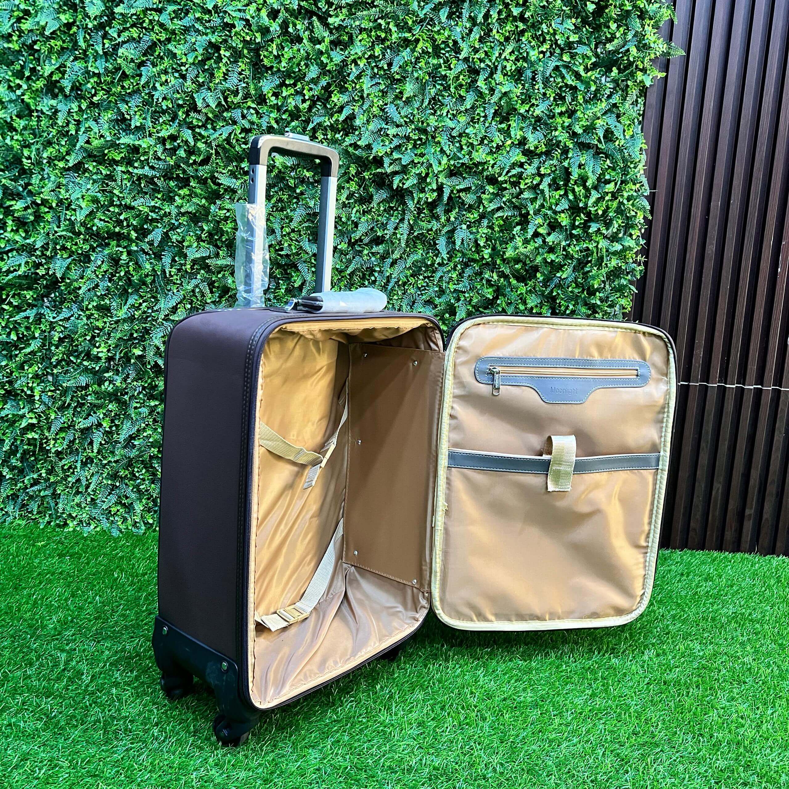 Each piece in this set is meticulously engineered with premium materials and sleek contours, featuring reinforced corners, smooth-glide spinner wheels, and telescopic handles for effortless mobility. The rich dark moonlight finish, accented with signature Mendels emblems and leather-trimmed details, makes a bold statement of sophistication.