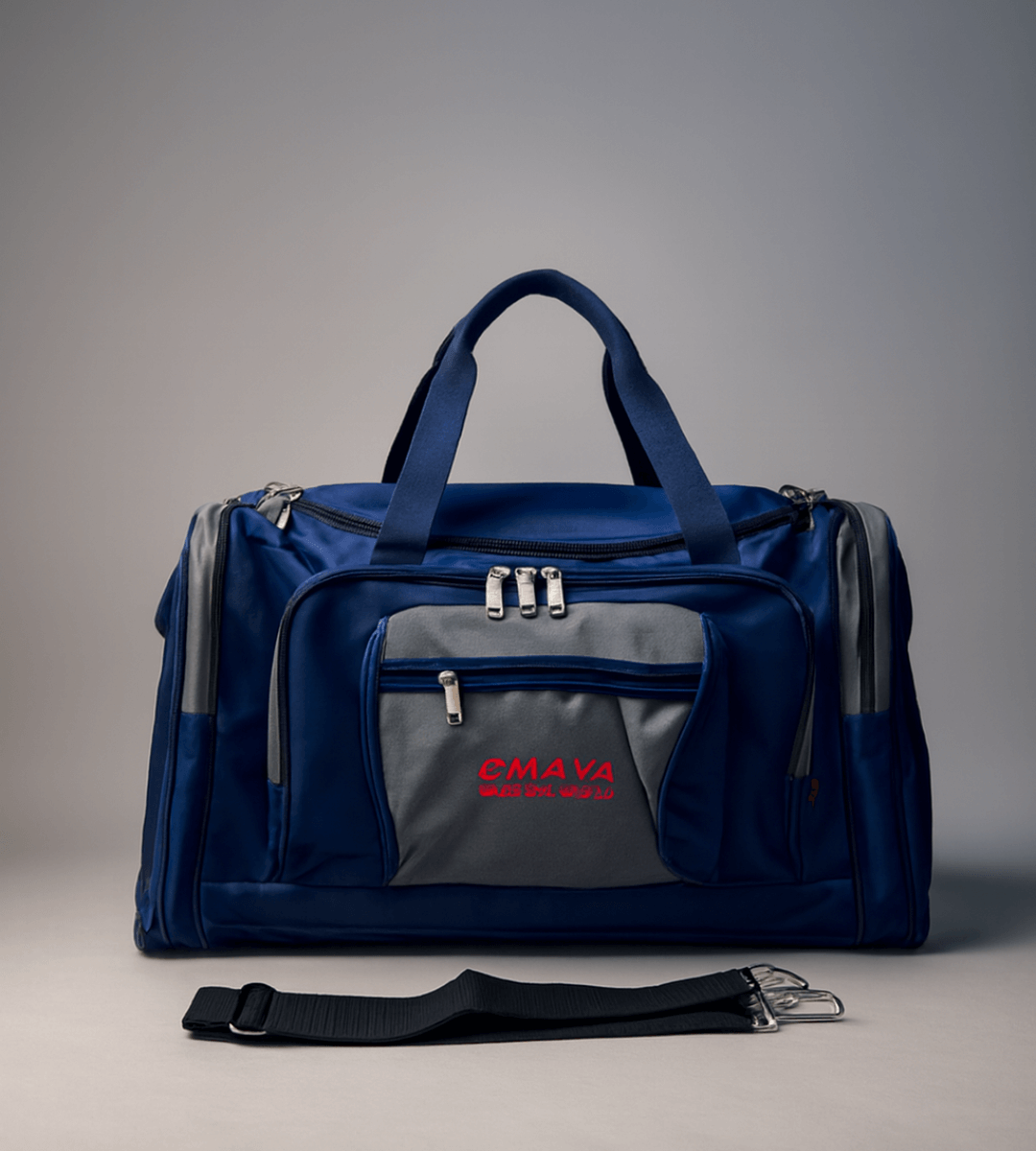 Spacious, durable, and stylish — perfect for travel or gym use. Features multiple zippered compartments, a detachable padded shoulder strap, and strong carry handles. Made from high-quality, water-resistant fabric in navy blue with gray accents. Designed for comfort, convenience, and lasting performance.