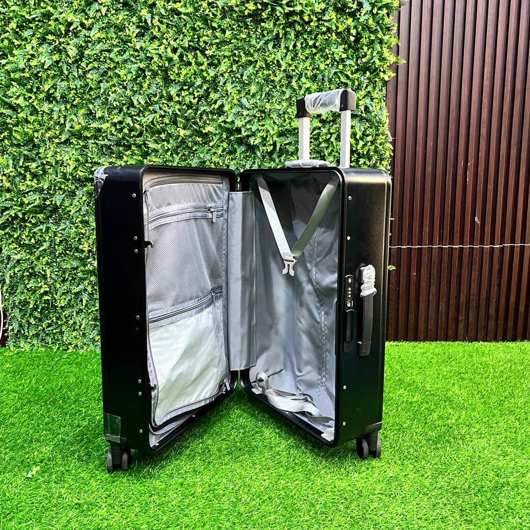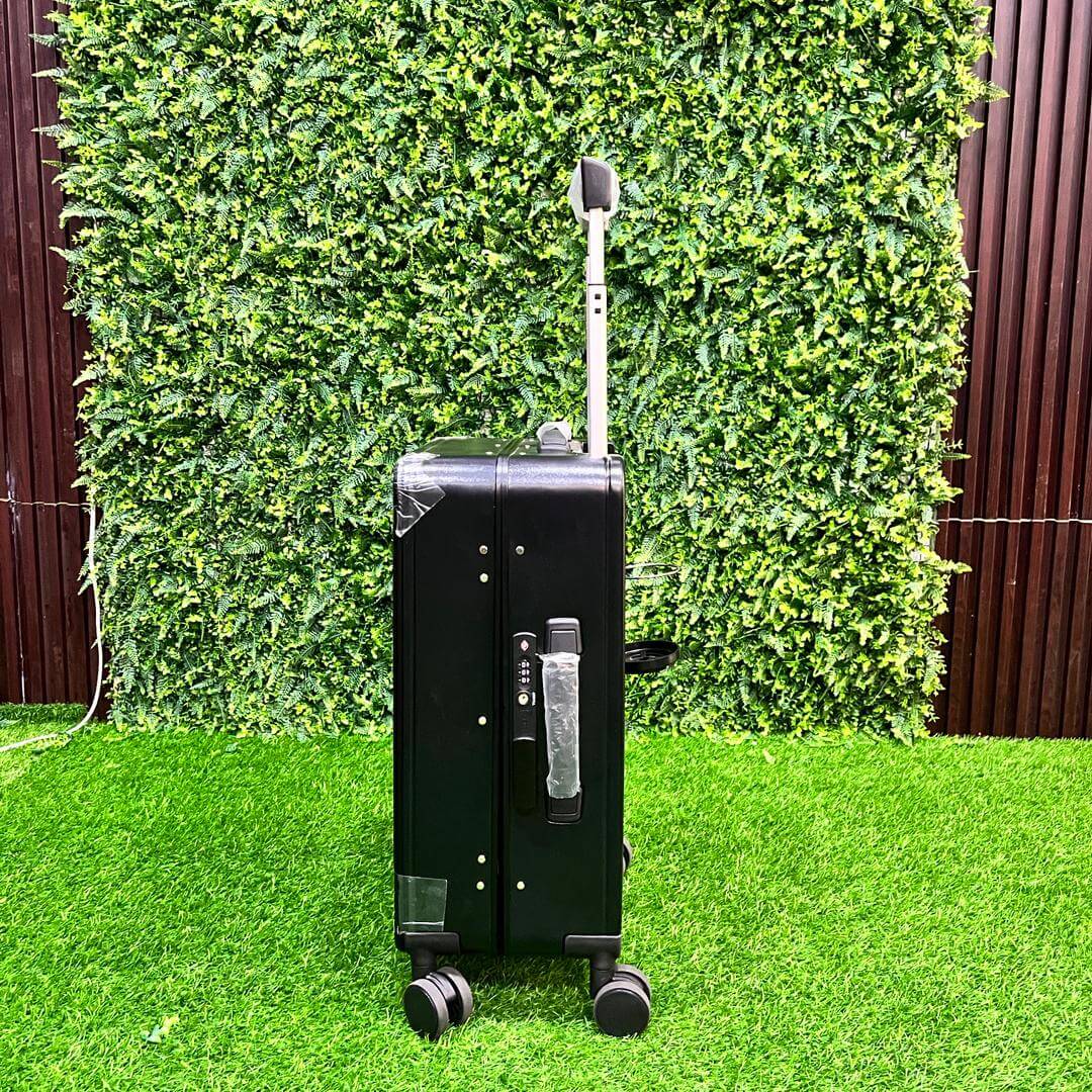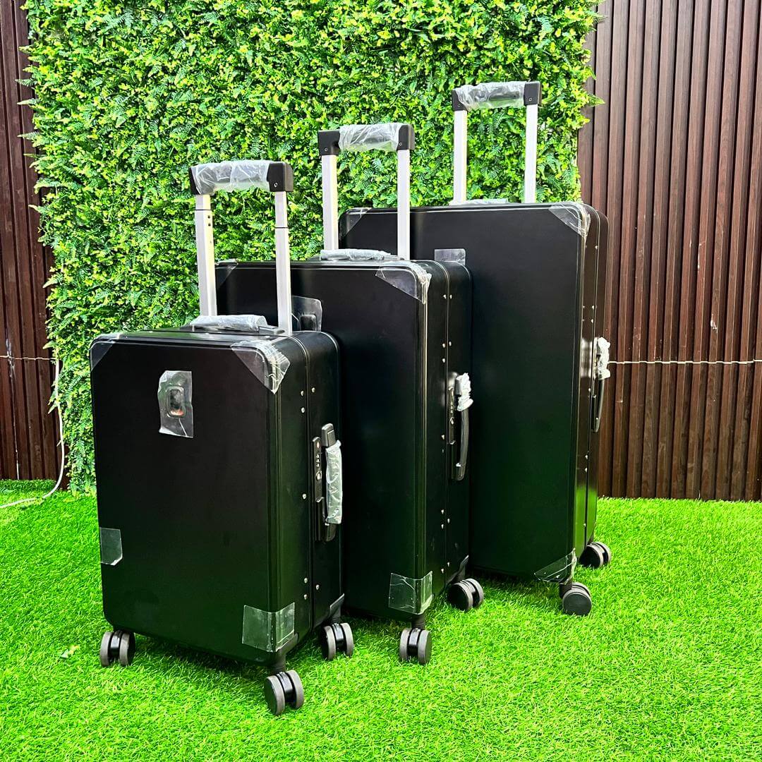 The PC Aluminum 3-Piece Spinner Luggage Set (20″, 24″, 28″) delivers titanium-finished elegance, whisper-quiet wheels, TSA lock, expandable interior, and a built-in bottle holder—crafted for stylish, secure, and hydrated travel.